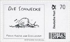 Kleiner und bescheidener startet da der Kulturverein Die Schnecke ins Jahr 2017. Er präsentiert jetzt einen ersten Bogen mit einer von Lara Redmer gestalteten 70-Cent-Briefmarke, die das von Günter Grass gezeichnete Wappentier der seit 1981 bestehenden Kulturinitiative samt Vereinsname zeigt.
