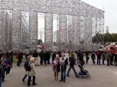 Höhepunkt der nun beendeten documenta 14 war zweifelsohne der „Parthenon der Bücher“. Dort, wo 1933 die Nationalsozialisten 2000 Bücher auf einem Scheiterhaufen verbrannt hatten und acht Jahre später alliierte Flieger die 350 000-bändige Bibliothek im Fridericianum auslöschten, stand in diesem Sommer ein spektakulärer Büchertempel. Angelehnt an die Athener Akropolis, hatte die argentinische Konzeptkünstlerin Marta Minujin ein 20 Meter hohes und 70 Meter langes Skelett aus Stahlmodulen errichtet. Beabsichtigt war, diesen „Rohbau“ mit Büchern, die irgendwann irgendwo auf der Welt offiziell verboten waren, zu verkleiden. Seit der letztjährigen Frankfurter Buchmesse wurden Literaturfreunde gebeten, entsprechende Texte zur Verfügung zu stellen. An der Kasseler Universität überprüften Studenten, ob die Bände wirklich den geforderten Kriterien entsprachen. Danach wurden die freigegebenen Exemplare von Arbeitern des VW-Werks in Baunatal wetterfest eingeschweißt, bevor sie mit Kabelbindern am Tempelskelett auf dem Kasseler Friedrichsplatz befestigt werden konnten. Besucher wurden gebeten, während der documenta weitere Bücher mitzubringen, und so verwandelten schließlich 65 000 Romane, Novellen, Gedicht- und Essaybände, Tagebücher, Briefsammlungen und andere Sachbücher den Parthenon in einen bunten Blickfang. Seit seiner Gründung hat der Kulturverein Die Schnecke immer wieder „verbotene“ Autoren zu Gast gehabt. Neben Exilanten der NS-Zeit wie Walter Fabian und Georg K. Glaser waren dies die mittel- und osteuropäischen Schriftsteller Pawel Kohout und Lew Kopelew, die DDR-Dichter Wolf Biermann und Günter Kunert, aber auch Günter Grass und Martin Walser. Die griechische Ausgabe der Grass-Novelle „Katz und Maus“ war 1967 von der Athener Militärjunta verboten worden. Martin Walser stand gleich mit neun seiner Werke in Italien auf dem Index, unter anderen mit „Brandung“, dem Roman, aus dem er Mitte der 1980er-Jahre in der Göttenbach-Aula las. Angesichts dieses Bezugs zu verbotenen Büchern lag es nahe, dass sich Die Schnecke am Kasseler „Tempel der verbotenen Bücher“ beteiligte. Im niederländischen Purmerend hatte im November 1985 Konrad Merz den Gästen von der Nahe einige Passagen aus seinem Erstlingsroman „Ein Mensch fällt aus Deutschland“ vorgelesen. Unmittelbar nach dem Erscheinen hatten die Nazis das Buch verboten und auf Scheiterhaufen verbrannt. Jetzt wurde es von Sonja und Axel Redmer nicht nur dem Kasseler Bücherparthenon hinzugefügt, sondern findet sich zudem in der mehr als 120 000 Titel umfassenden und weltweit geführten „List of Banned Books“, in die in den kommenden Monaten noch mehrere verbotene und bisher noch nicht registrierte Bücher von Gastautoren der Schnecke aufgenommen werden sollen. Zur Symbolik des Büchertempels gehörte es, die zuletzt eingeschweißten Werke „zu befreien“, das heißt, der Öffentlichkeit zugänglich zu machen. Deshalb wurden an den letzten Tagen der documenta die am Stahlskelett befestigten Bücher mithilfe zweier Kräne wieder entfernt und von interessierten Besuchern als Lektüre mitgenommen.